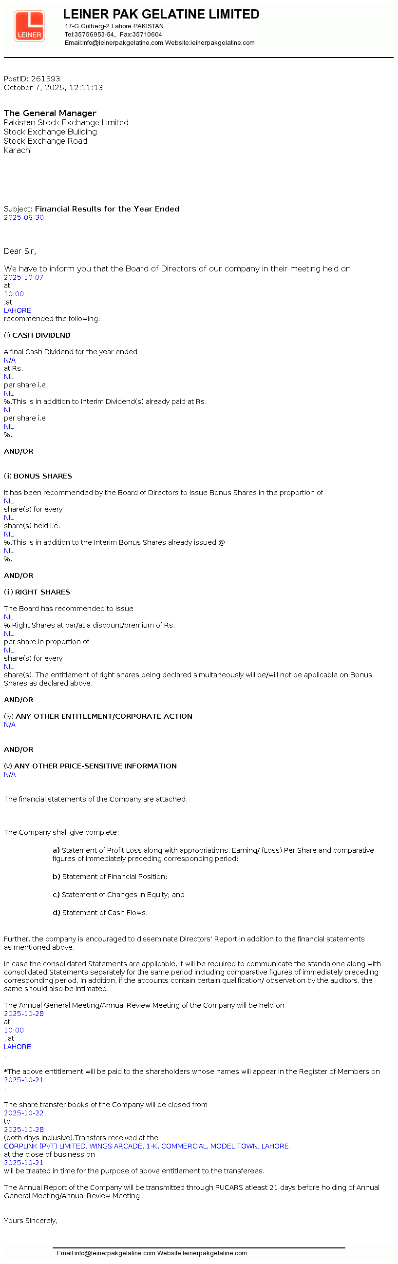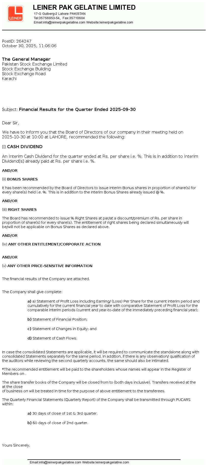 Latest Dividend